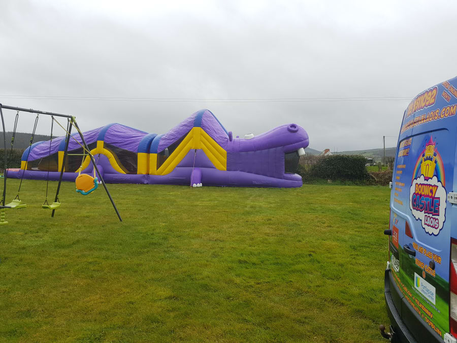 Hippo Castle is large and in charge! Time for some serious fun with the Hippo Castle Bouncy Castle. This large, purple hippo shaped obstacle course bouncy castle is sure to get your little one moving and having a blast!