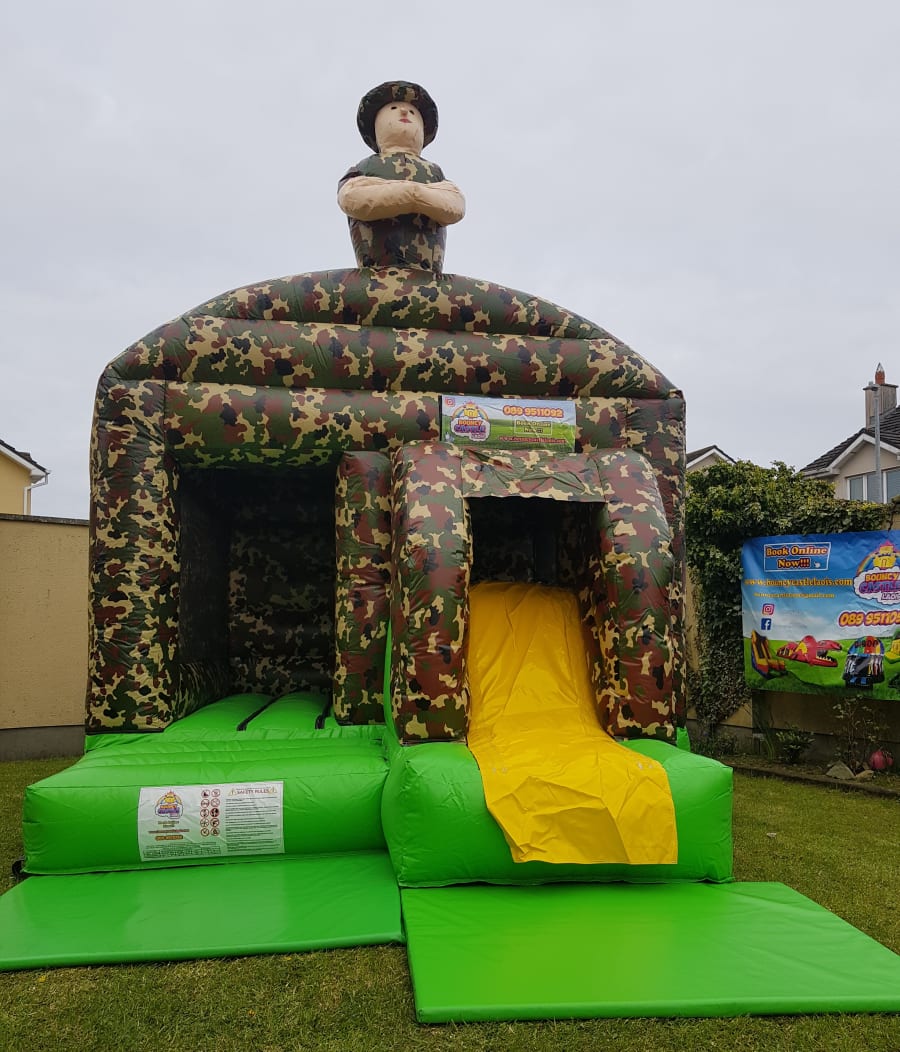 Introducing our small army-themed castle—the perfect play space for little soldiers to bounce and slide into action! Let your child's imagination run wild with this fun-filled, action-packed castle that transforms any celebration into an adventurous day. Key Details: Age Suitability: 3–7 years Delivery: Delivered the day before your booking date. Collection: Collection starts on the last day of your booking from 6 PM. Setup: Designed primarily for grass surfaces, but also suitable for hard surfaces (both outdoors and indoors). Included Equipment: 2 safety mats 1 extension lead Air blower 9 anchor pegs Maintenance: All castles are inspected and cleaned after each use and tested for safe use annually. Usage Guidelines (User Number and Height Limits): Height up to 1.0m: Maximum of 5 kids Height up to 1.25m: Maximum of 4 kids Height up to 1.5m: Maximum of 3 kids Height up to 1.7m: Maximum of 2 kids Important Setup Instructions: Surface Requirements: Ensure the area where the castle is placed is flat and has clean grass. Clearance Guidelines: • Back of the castle: Minimum clearance of 1.5 meters • Front of the castle: Minimum clearance of 2 meters • Each side of the castle: Clearance of 1.2 meters on each side • Access: Clearance of 0.8 meters Obstruction-Free Zone: Ensure there are no branches or trees hanging over the area. Additional Safety Measures: If the front of the castle is near a hard surface (e.g., concrete slab or paving), please inform us in advance as extra safety mats will be required. Entrance/Exit Safety: Ensure the entrance and exit are not near steps or curbs and remain on level ground. They must stay clear at all times for safe access and egress. If the setup location has nearby steps, kerbs, or any other potential hazards, please inform us in advance so we can discuss alternative placement or additional safety measures. Wind Safety: If wind speeds exceed 38 km/h, the air blower must be turned off until speeds drop. Use your phone’s weather app to monitor this. Adult Supervision: Adult supervision is required at all times while the castle is in use. Booking Information: This rental is available for private and residential settings. For setups on public grounds (e.g., a public green area outside of a residential setting), please contact us in advance before booking. If you have any questions or need further assistance, don't hesitate to reach out. We're here to help make your little soldier's day extra special!