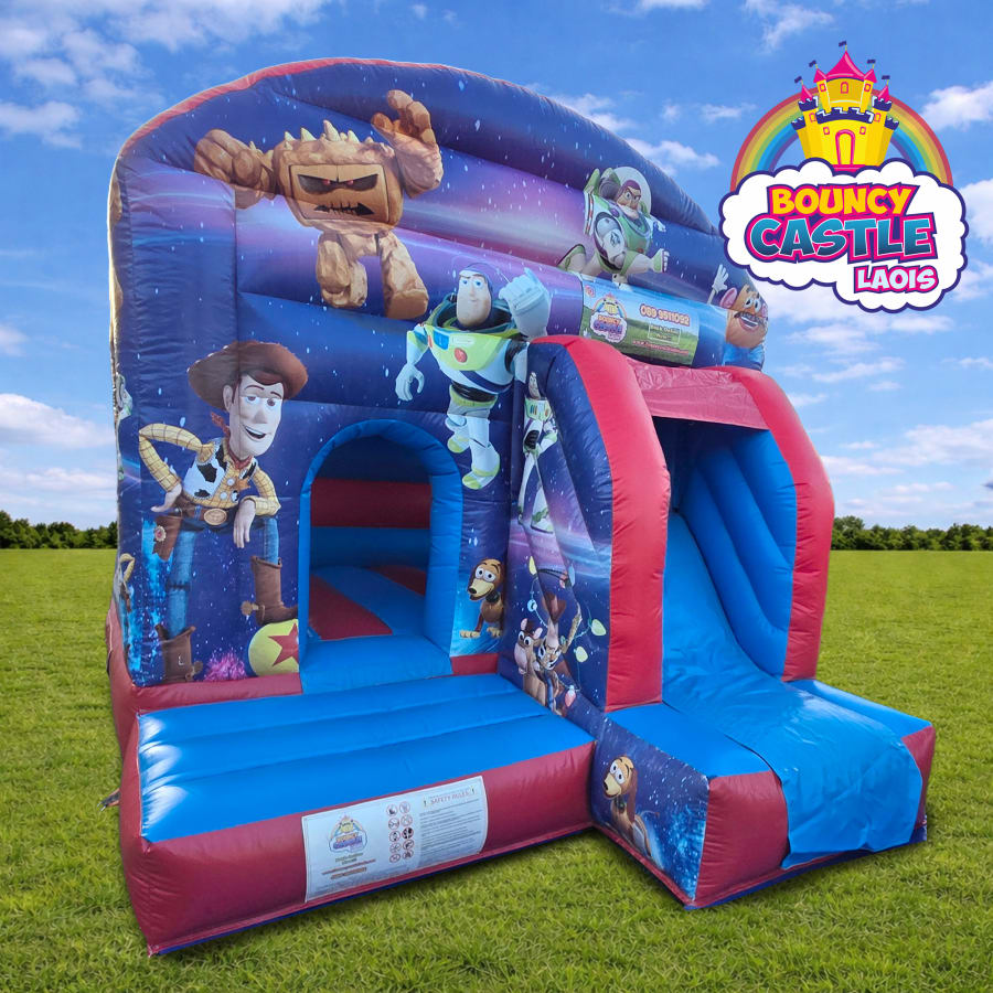 This Toy Story-themed bouncy castle is the perfect addition to any child's birthday party or special event! Medium in size, it features a slide and plenty of room for kids to bounce around. It's perfect for hours of fun!