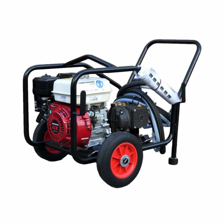 Equipped with a durable Honda GX200 petrol engine, the GX200 Power Washer offers long-lasting performance and consistent operation. Its impressive pressure rating delivers a forceful spray that effortlessly blasts away dirt, grime, and debris. Whether you’re removing stubborn stains from concrete, degreasing machinery, or refreshing outdoor spaces, this power washer is up to the task.