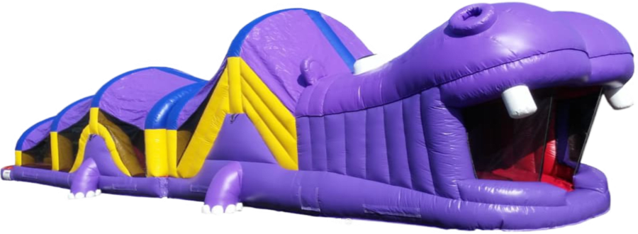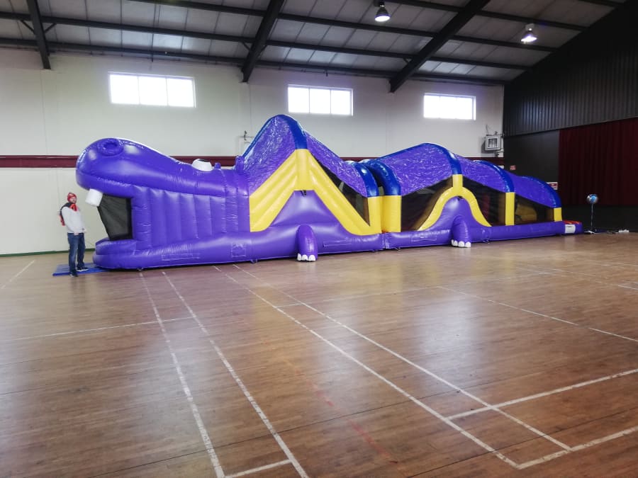 Hippo Castle is large and in charge! Time for some serious fun with the Hippo Castle Bouncy Castle. This large, purple hippo shaped obstacle course bouncy castle is sure to get your little one moving and having a blast!
